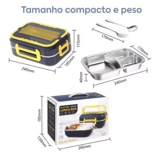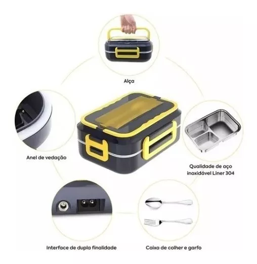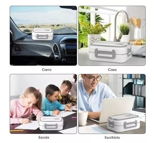 Marmita elétrica veicular e de tomada, indicada para pessoas que precisam de praticidade e conforto na hora de esquentar a sua comida entre um compromisso e outro do dia a dia.