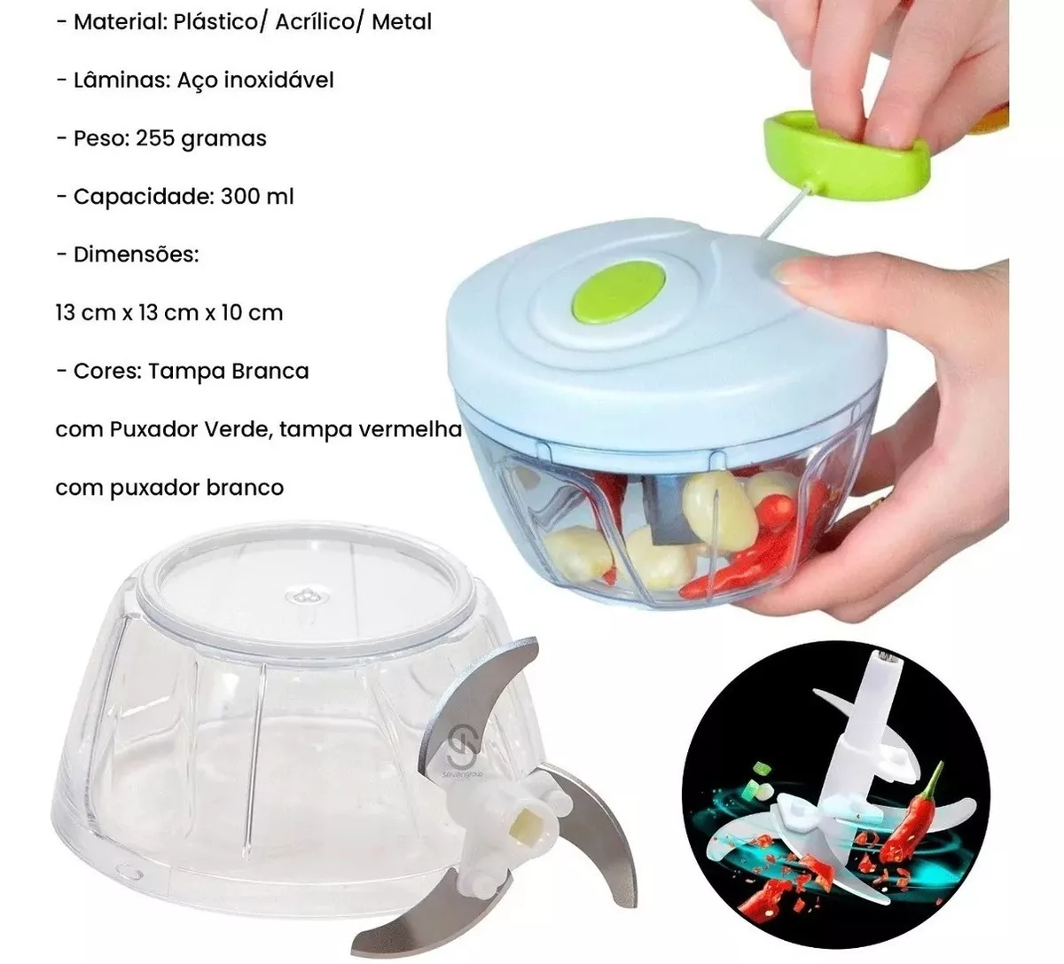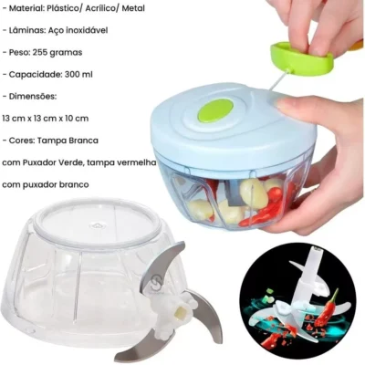 Este prático triturador manual é projetado para simplificar o processo de preparação de alimentos, especialmente quando se trata de alho e outros vegetais. Com ele, você poderá picar, fatiar e triturar ingredientes de forma rápida e eficiente, economizando tempo e esforço na cozinha.